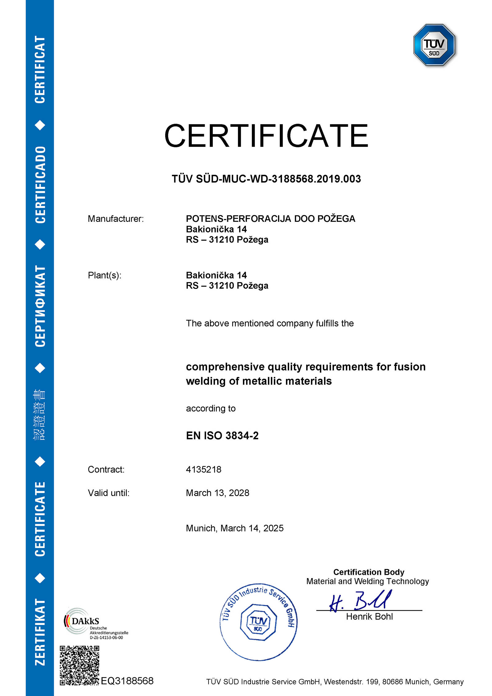 ISO 3834-2 TUV SUD