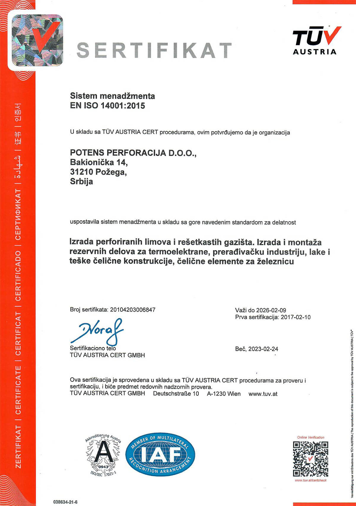 ISO 14001 TUV Austria