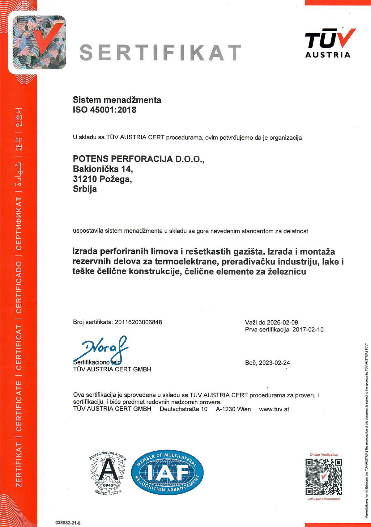 ISO 45001 TUV Austria